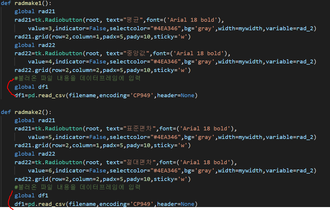 수정 코드는 아래와 같다. 2차선택하면 실행되는 함수에 메모장파일 불러와서 데이터프레임에 입력하는 코드도 넣었다.
